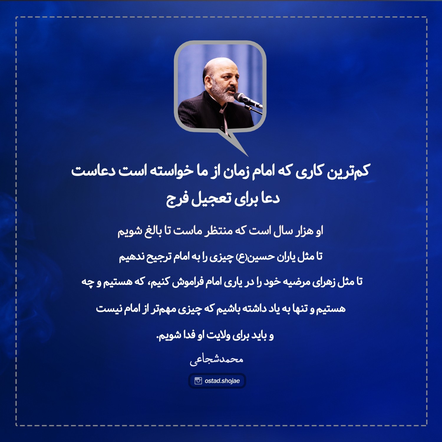 *«أَکْثِرُوا الدُّعَاءَ بِتَعْجِیلِ الْفَرَجِ فَإِنَّ ذَلِکَ فَرَجُکُم»*